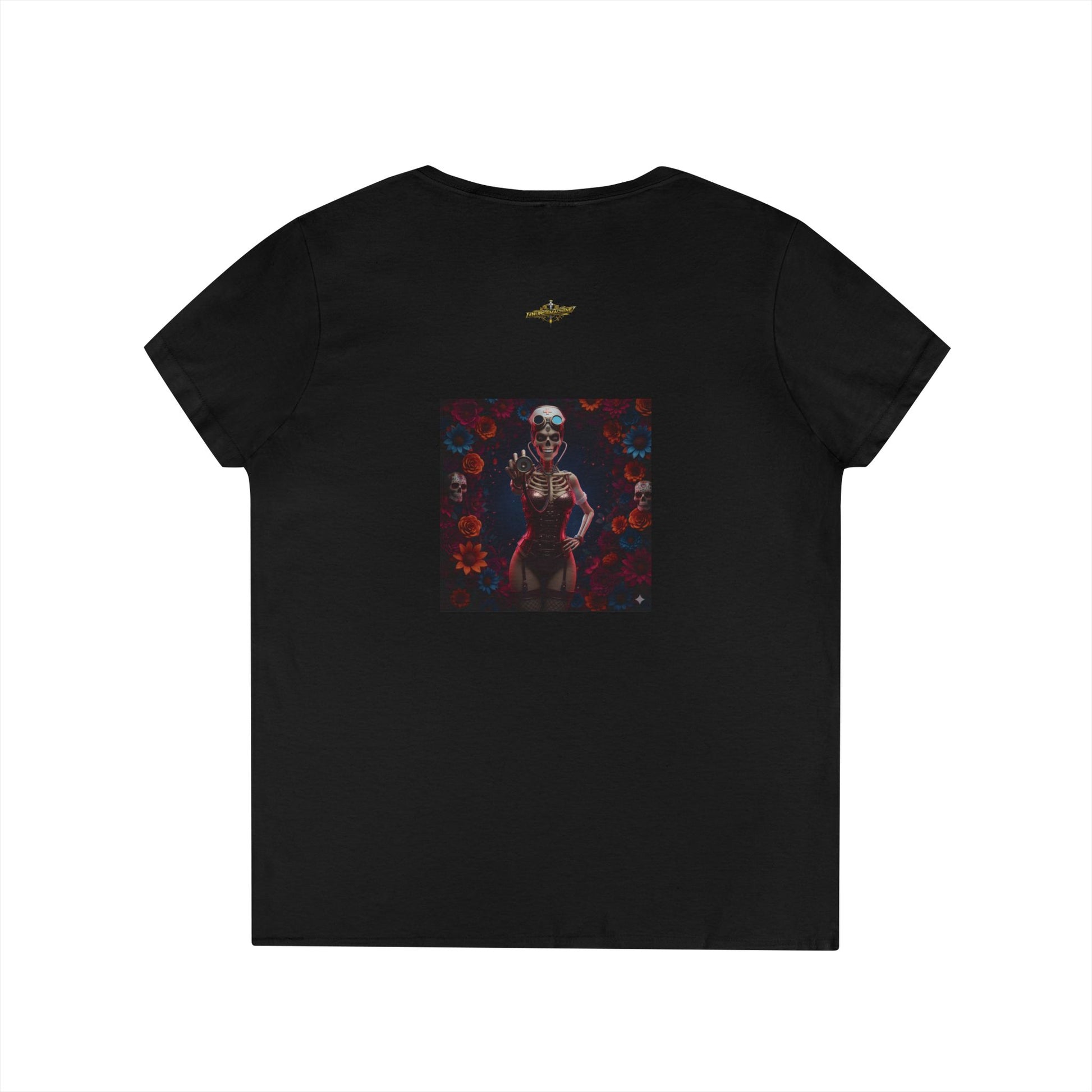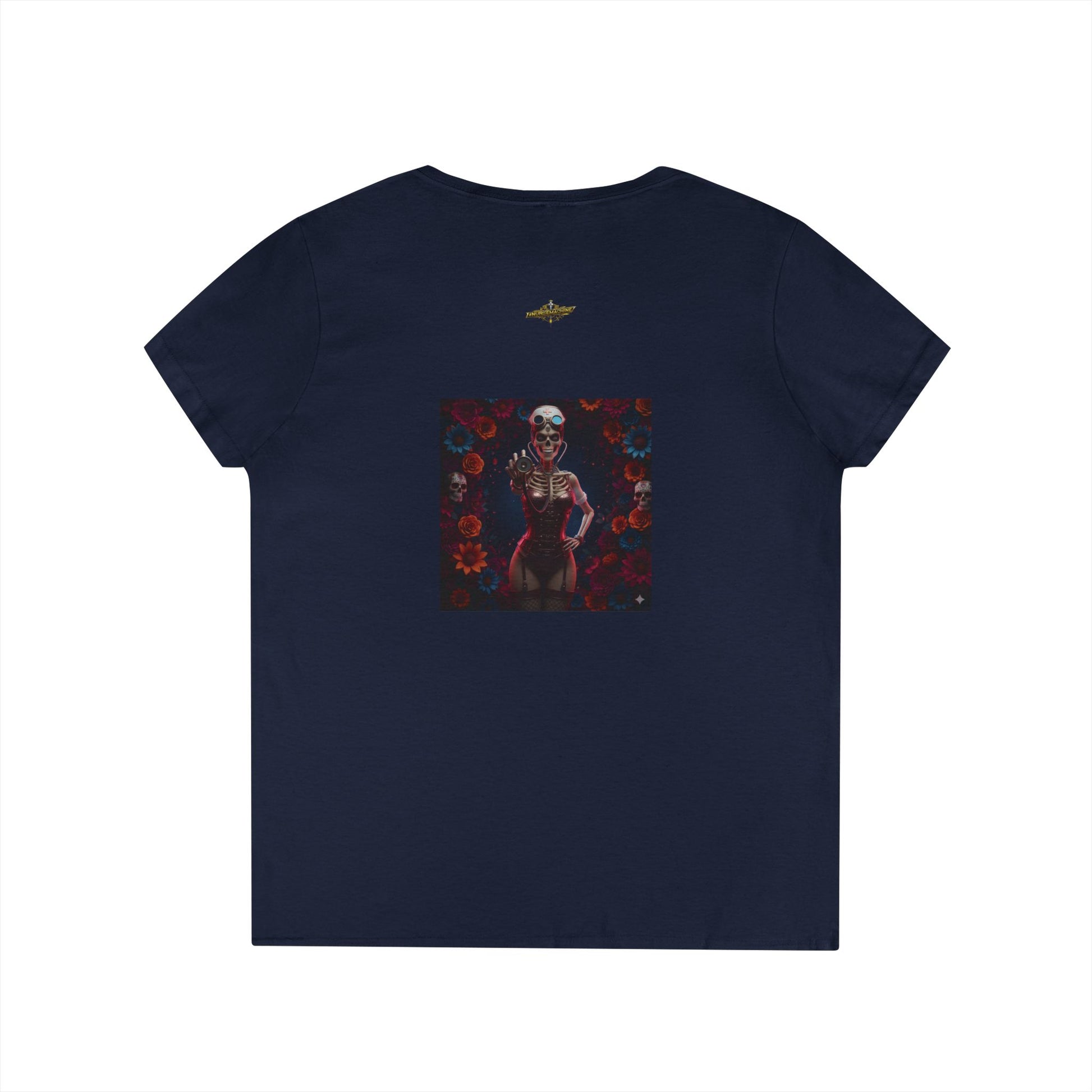 Présentation de cet élégant t-shirt à col en V pour femme, parfait pour ajouter une touche de style à votre garde-robe de tous les jours. Le design unique au dos présente des illustrations vibrantes qui attirent le regard et suscitent la conversation. Qu'il s'agisse de l'habiller avec un jean pour une soirée ou de la garder décontractée avec des leggings à la maison, cette chemise incarne la polyvalence et le confort.