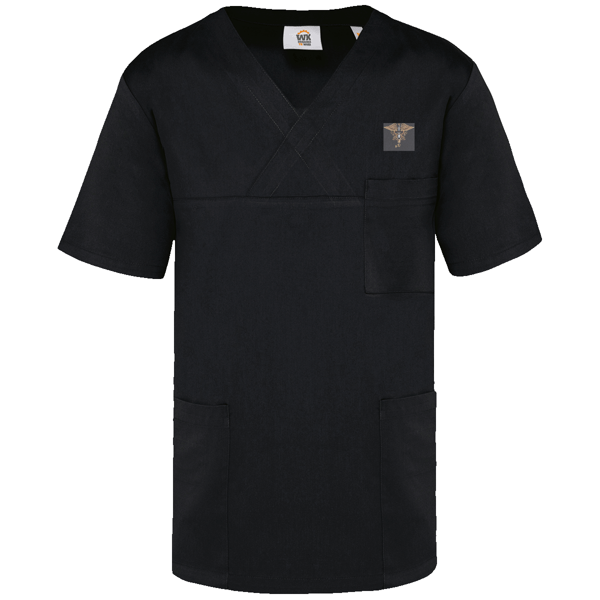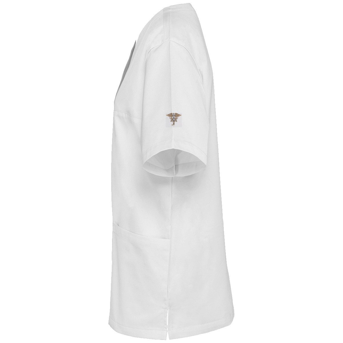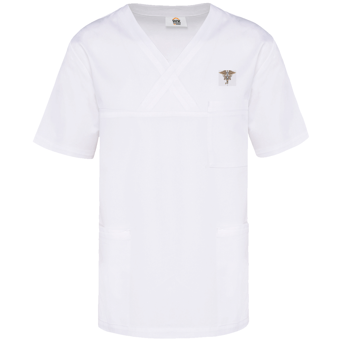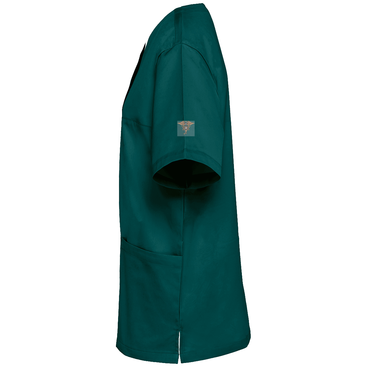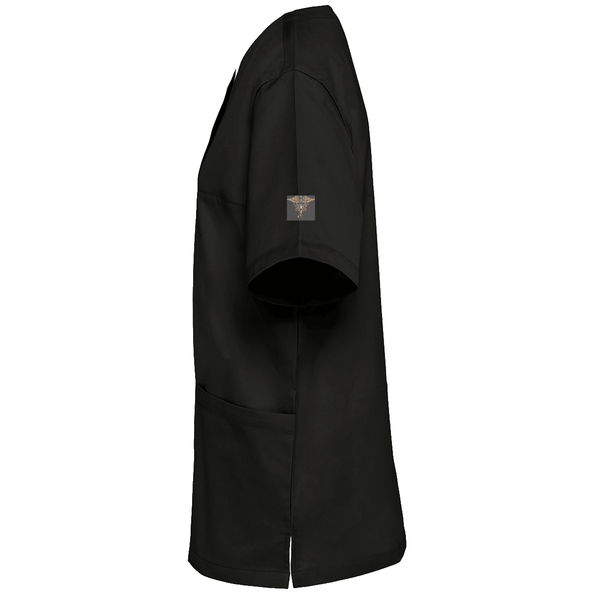 Tunique manches courtes polycoton unisexe. Prévue pour les lavages industriels, elle assure protection et hygiène au quotidien. Tissu polycoton résistant et agréable à porter tout au long de la journée. Etiquette de marquage nom à l\\\'intérieur, pour éviter de se tromper de vêtement. 65% polyester / 35% coton. Tissu sergé. Norme ISO 15797 lavage industriel 75°C (20 lavages). Coupe confort. Encolure en V croisée. Poche plaquée poitrine côté cœur. 2 grandes poches plaquées avant. 2 fentes d\\\'aisance latérales. Etiquette nom à l\\\'intérieur du vêtement. Etiquette de marque Tear Away.